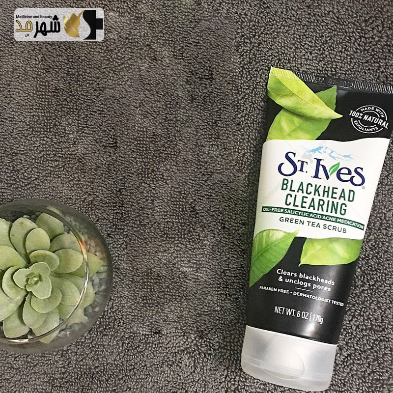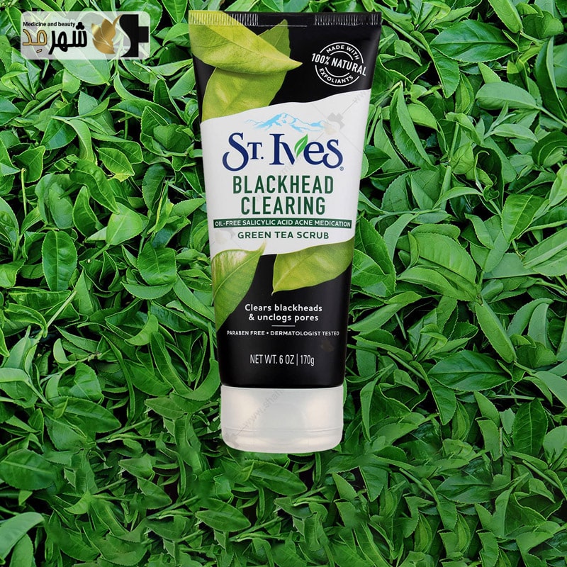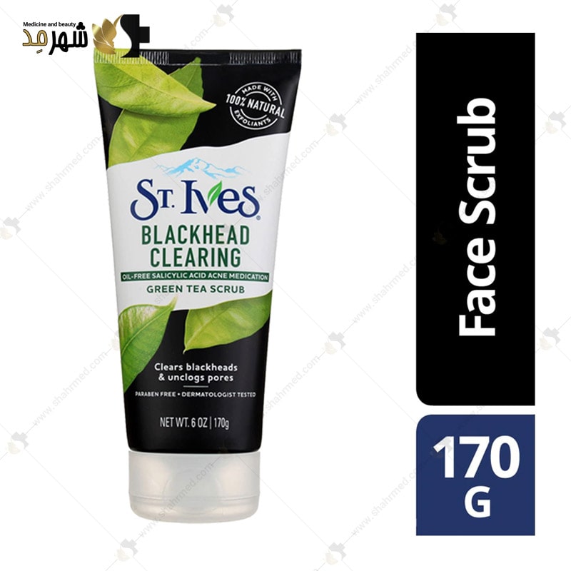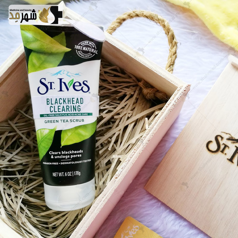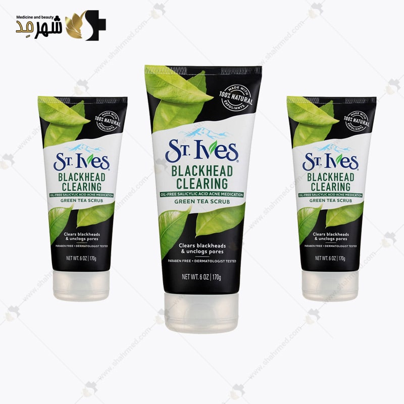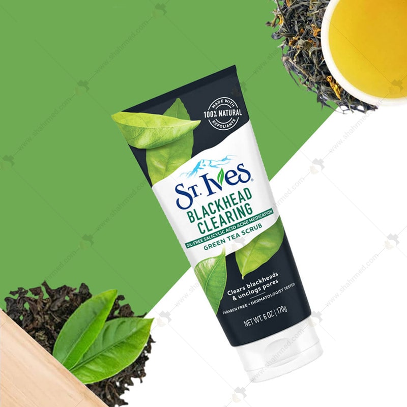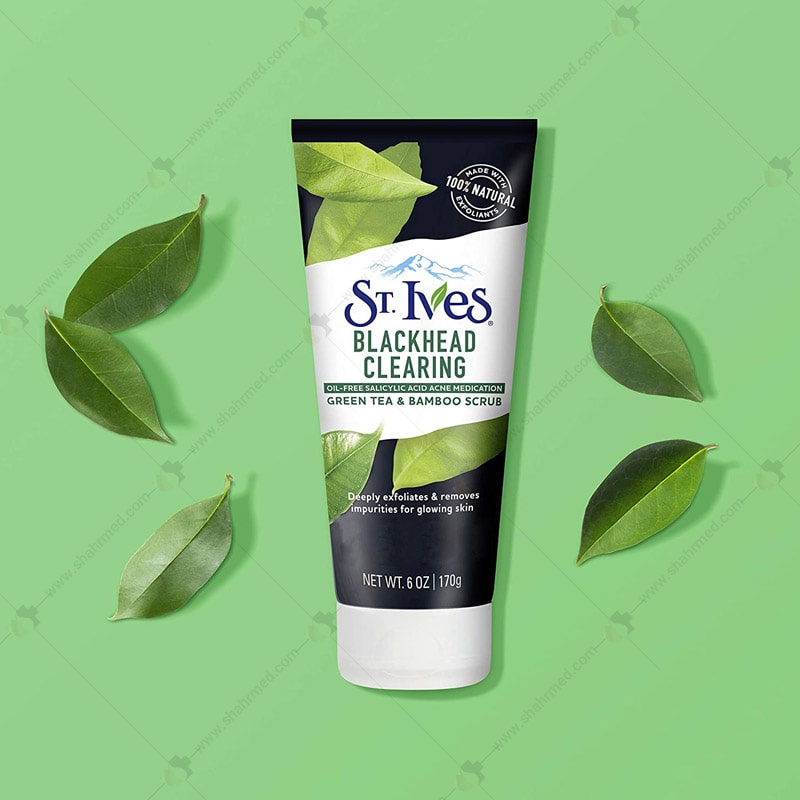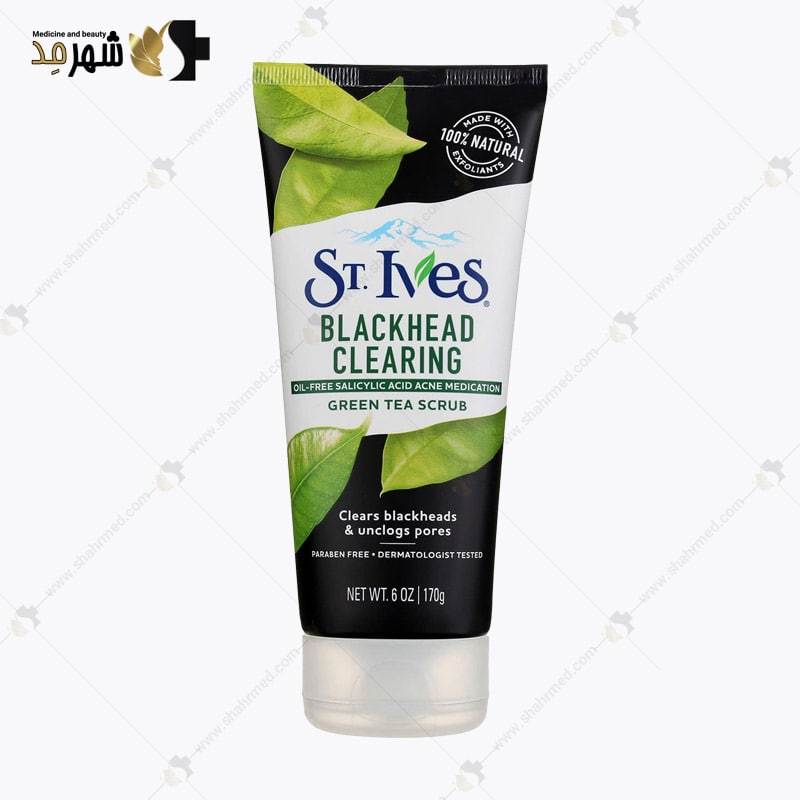 اسکراب 170 گرمی آمریکایی سینت ایوز مدل جوش سر سیاه با عصاره چای سبز و بامبو St.Ives Blackhead Clearing Scrub 170g